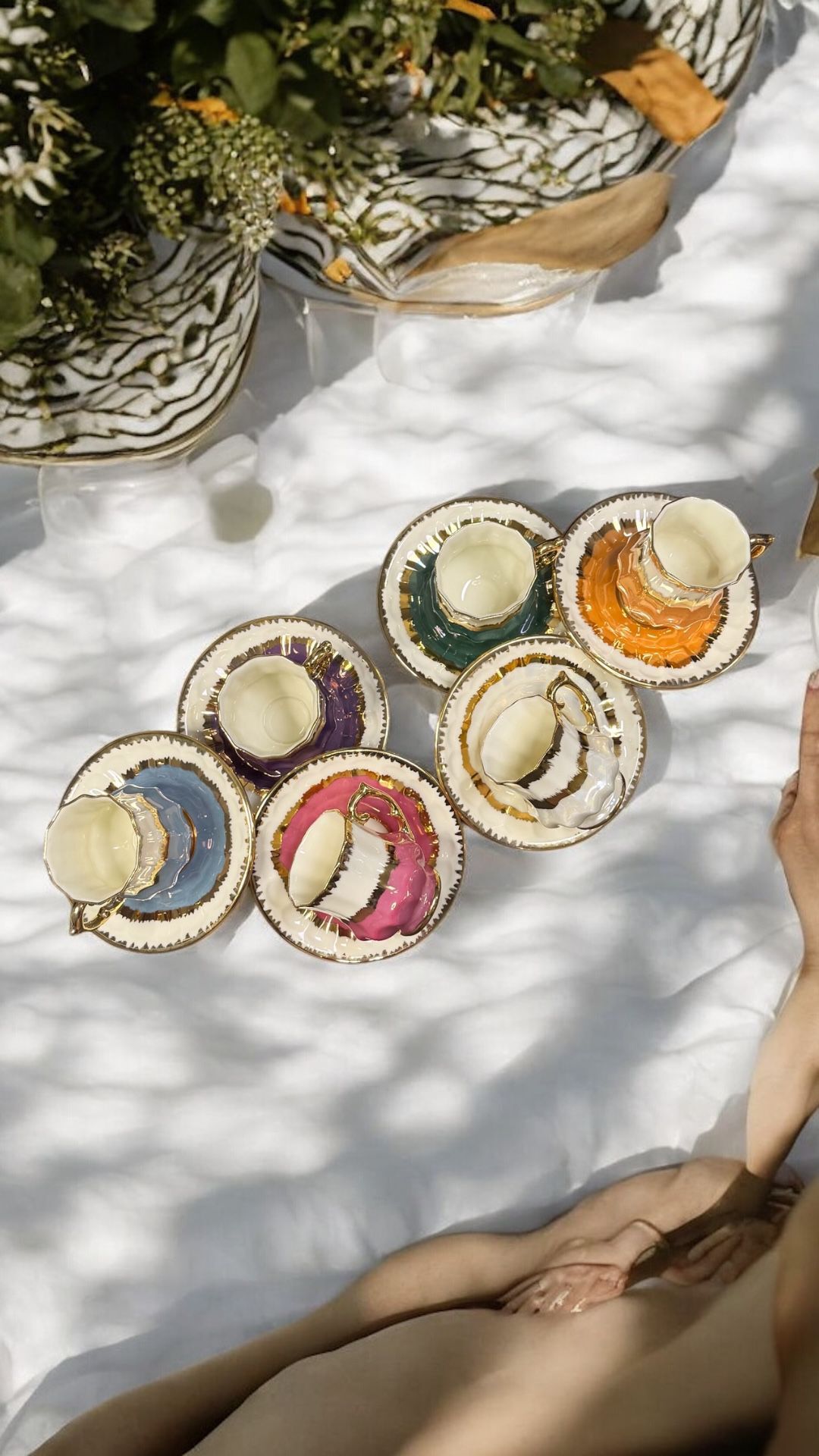 ZİKZAK EL BOYAMA 6LI KAHVE FİNCAN TAKIMI